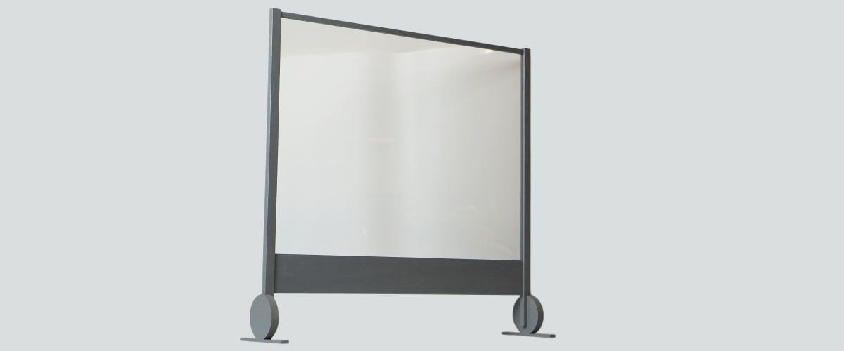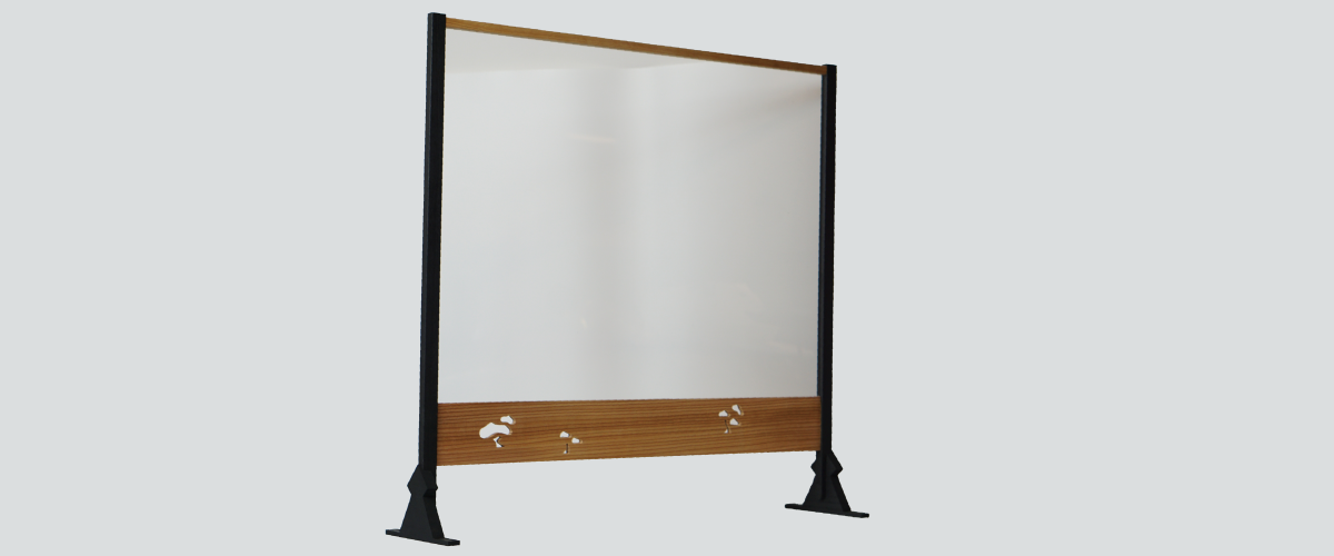 透かし彫りを施した木枠のデザインとシンプルでオシャレな、アクリルパネルパーテーションです。